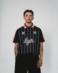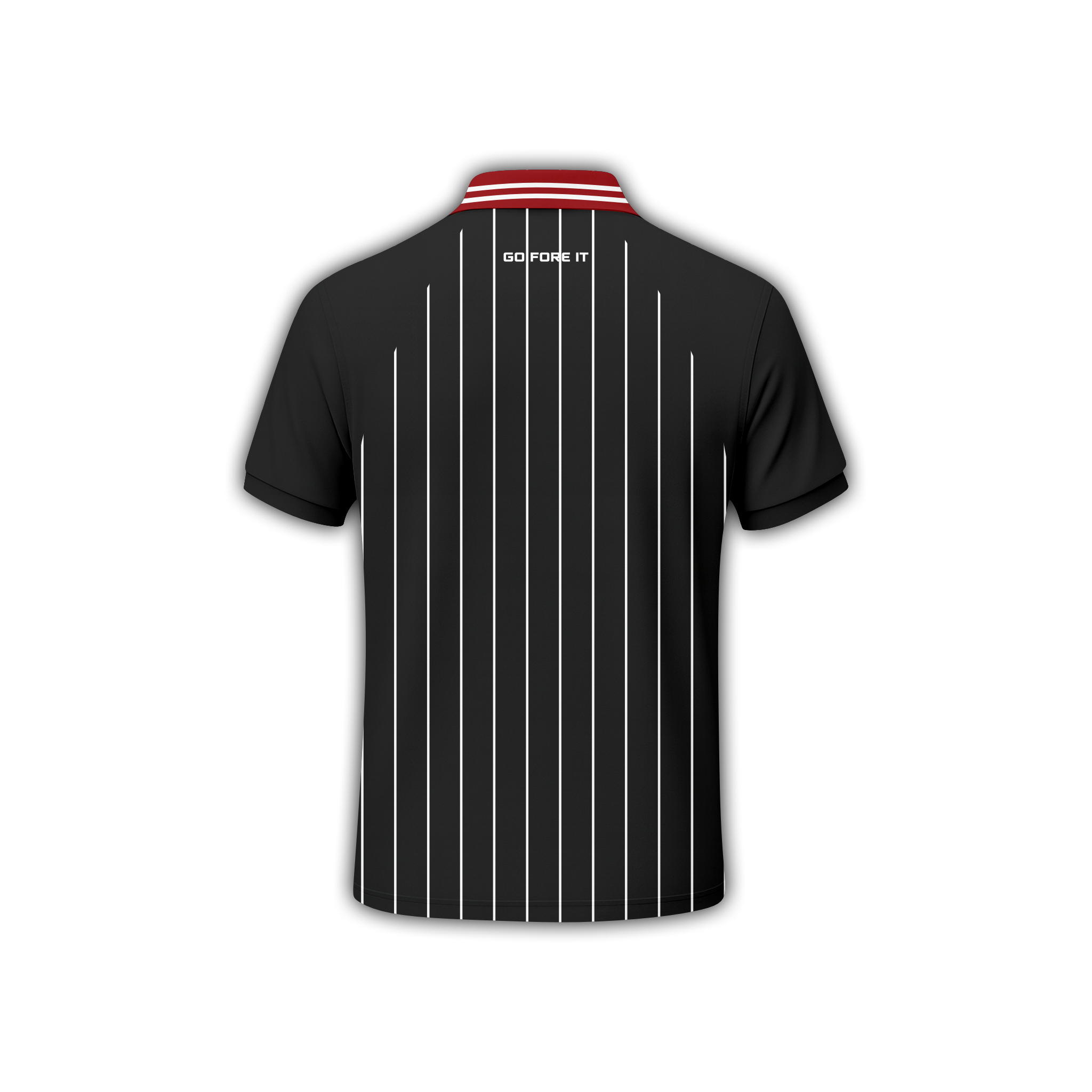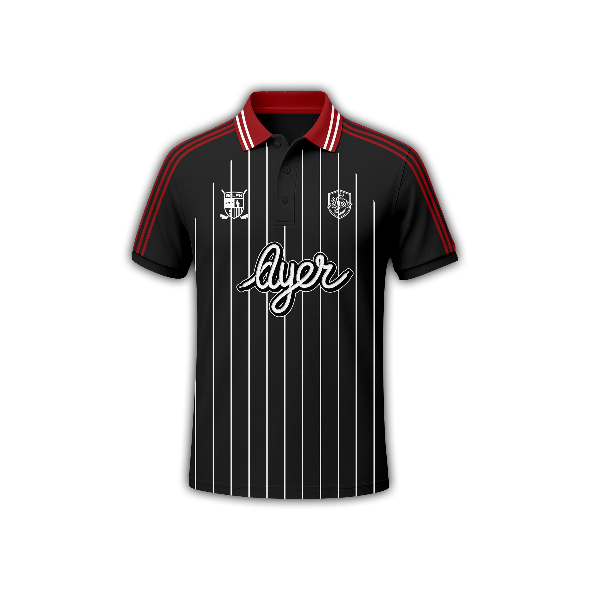 A bold fusion of street style and sport performance. The Ayer x GOLFN jersey features a sleek black base with clean vertical pinstripes, striking red accents, and premium detailing throughout. Designed for comfort and confidence on the course or off it. Go fore it.
